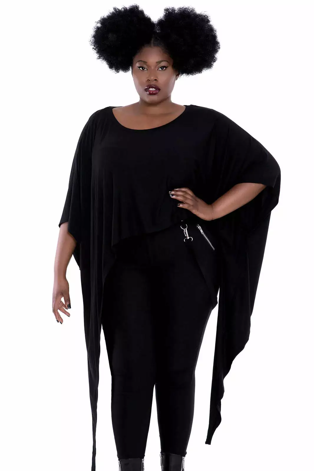 It’s a dark paradise! Getting down and spooky with the ‘Celestial Bodies’ statement top; an oversized body made of the softest stretch-jersey – that flows with movement perfectly! Complete with extra wide neck, slightly cropped body with wide sleeves and exaggerated hanky hems! Perfect for club visitations, infernal affairs and leaving the crypt at dusk/dawn.