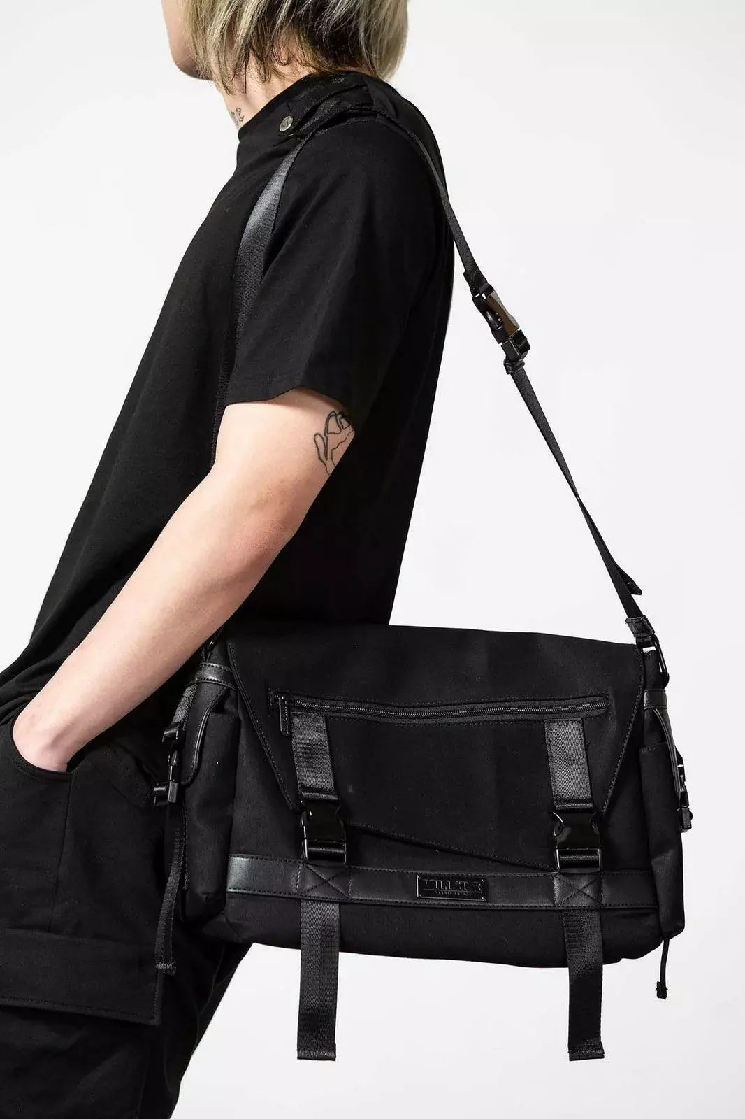 – Statement denim messenger bag.