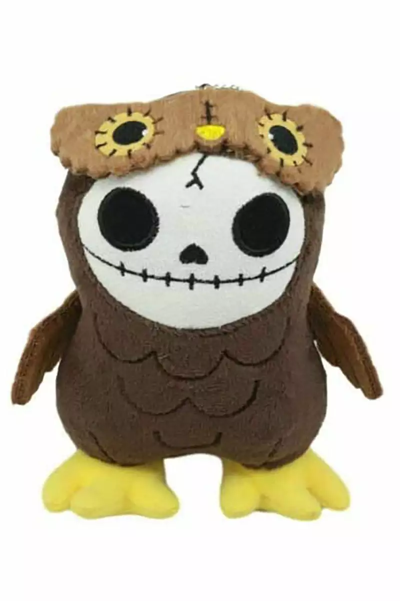 Give this creepy birdy a home, and he’ll be your best bird friend! With a skeleton face, stitched smile, and owl suit, this darling dead bird’s a hoot! Pop this spooky stuffed owl on your bed to bring some creepy cuteness to your crypt!