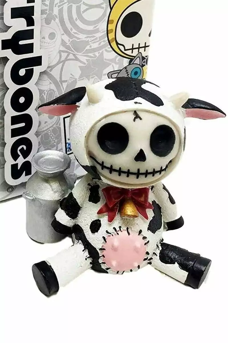 Tell your boo you udderly adore ’em with Moo Moo the Cow! Constructed of quality resin, this spooky statue features a skeleton dressed up in a stitched-up cow suit! With a red bow, cowbell, and teeny-tiny teats, Moo Moo is dying to creep out your crypt!