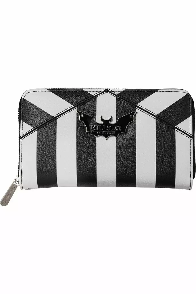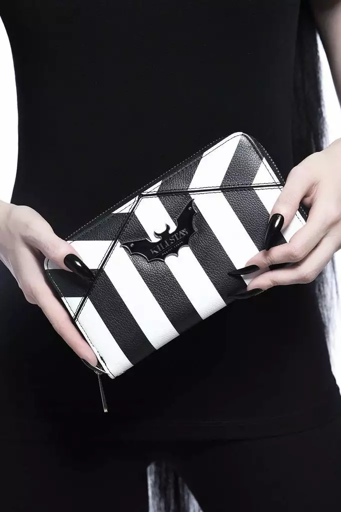 The ‘Never Trust The Living’ wallet is finished in a faux leather body adorned with a block-stripe print, branded bat plaque and complete with multiple storage compartments + zip closure. Keeps your change, notes, cards, spells, old talismans and more safely stored. Halloween is every day!
