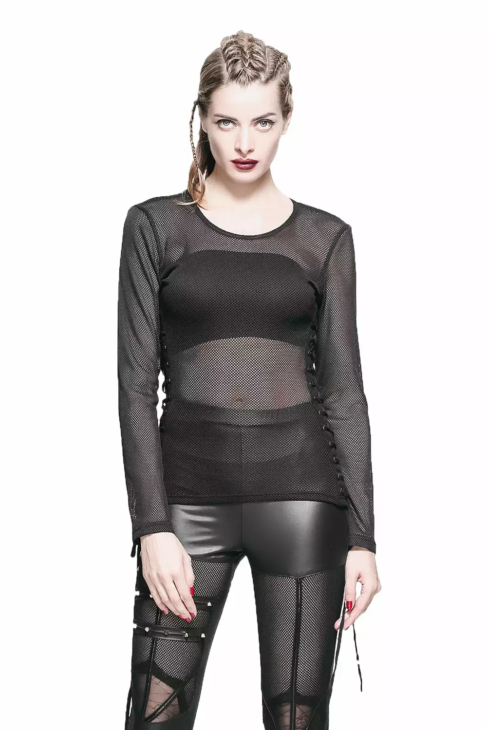 Channel your inner darkness in this fierce fishnet top, unisex and unique. Soft and stretchy, this sikk statement shirt features a diamond fishnet design with adjustable corset lacing down the sides. Finished with elastic banding at the neck and sleeves, you break hearts and turn heads – so nice to look at, but so deadly to touch!