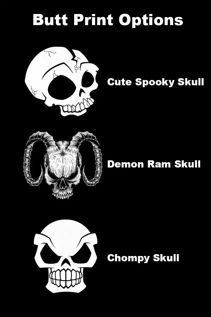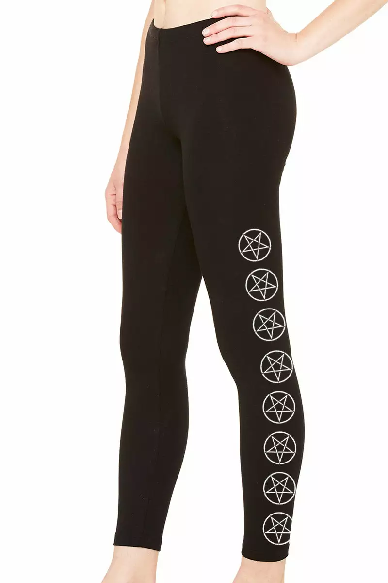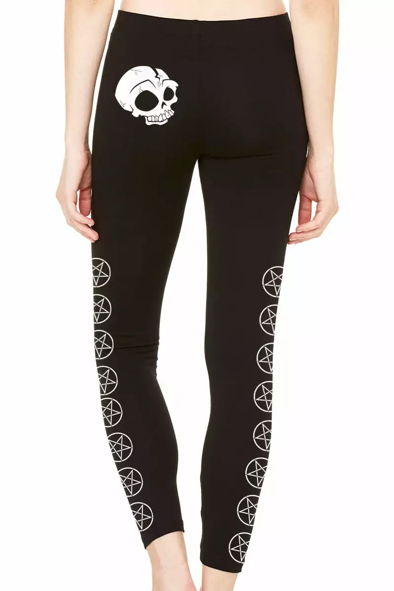 You’re a pretty pagan in these witchy leggings, soft and flexible to keep you feelin’ free all night at the séance. Made of comfy n’ cozy cotton, these leggings hug you in allll the right places for a super sexy + flattering fit. All eyes are on you (and yer bum!) with a skull of your choosing on the bootie and statement pentagrams blasting up the sides. Plus an elastic waistband for those moments we eat cupcakes.