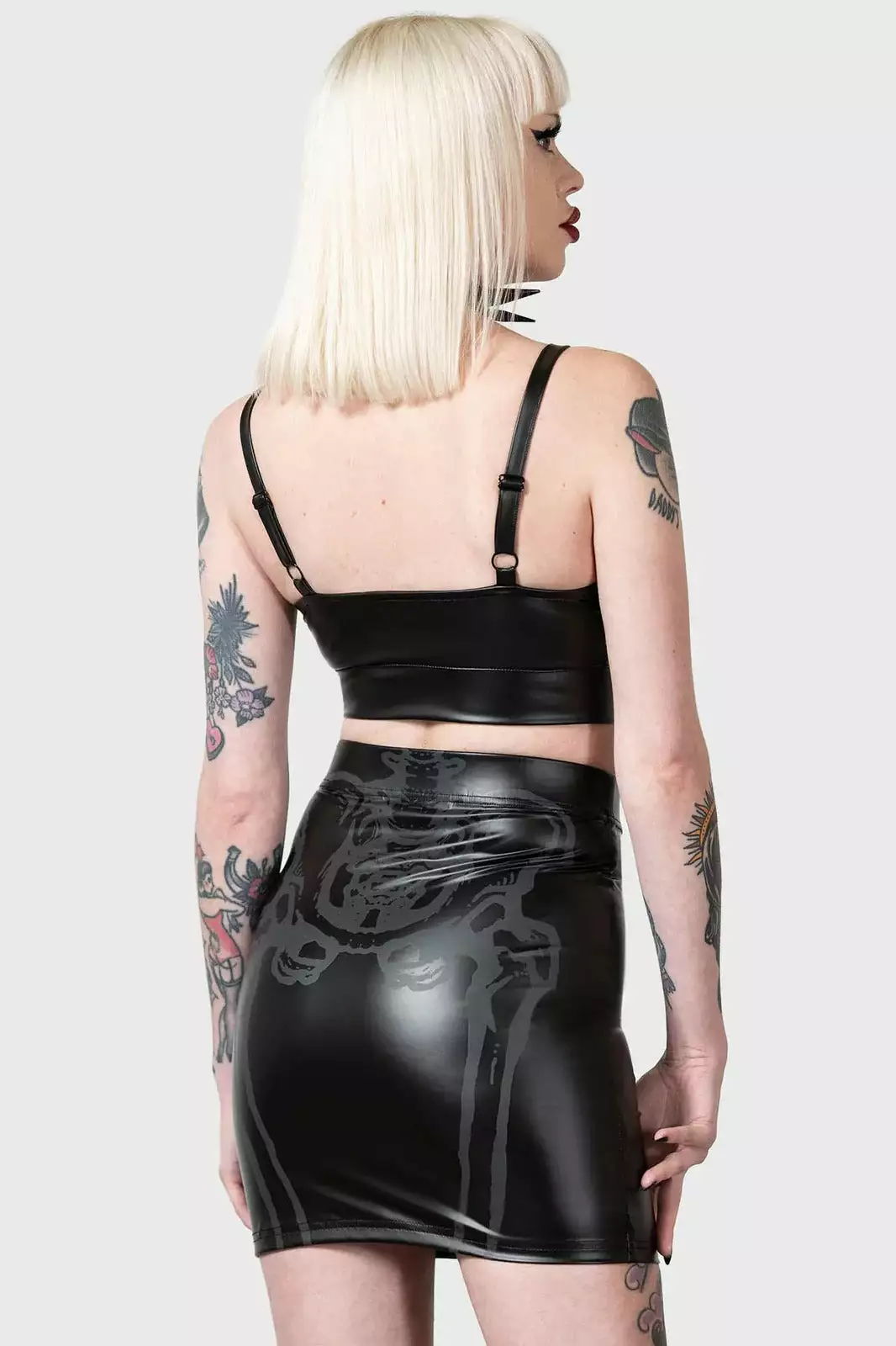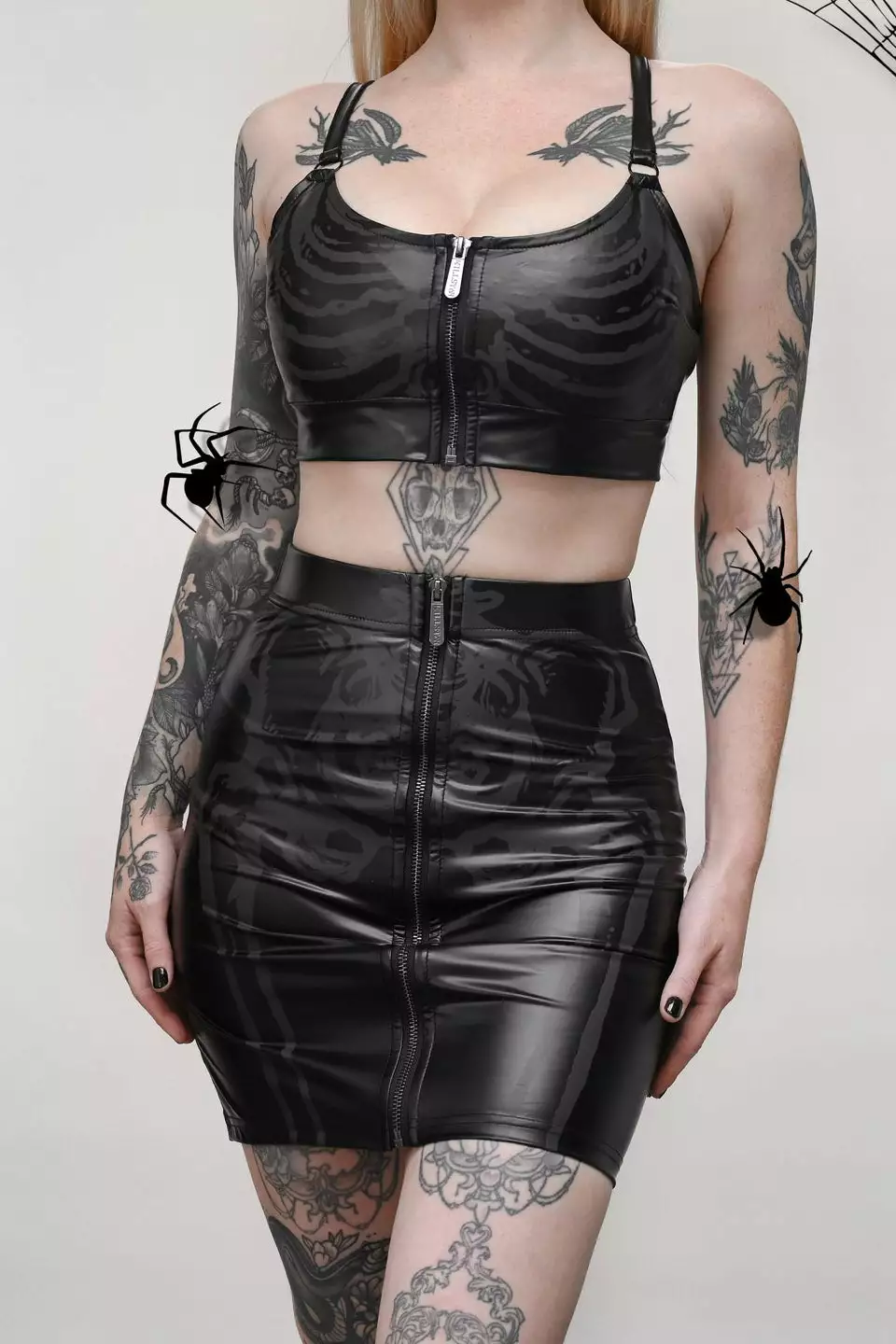 – Wet look, light stretch fabric.