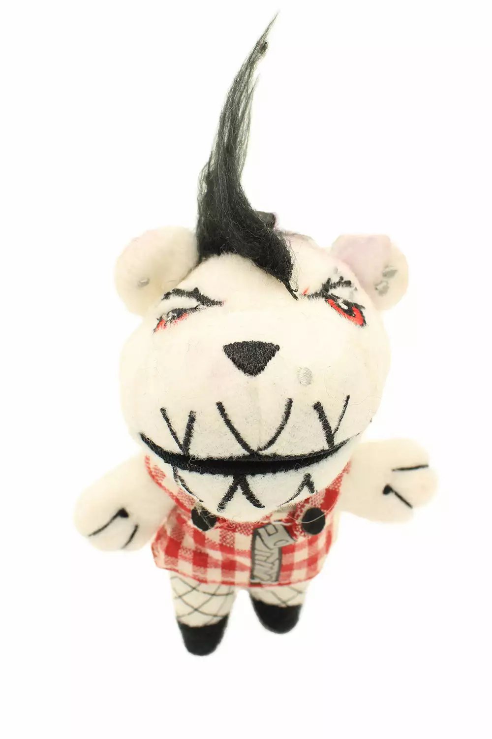 Summon scares with this darling dead keychain! Made of soft huggable plush, this spooky keychain features Rita Mortis… a punk rock bear who just wants to rock! When you push Rita’s belly, her stitched monster mouth opens wide with a misfit scream! Pop her on your backpack, purse, belt loops, etc, to make Rita Mortis your friend till the end.