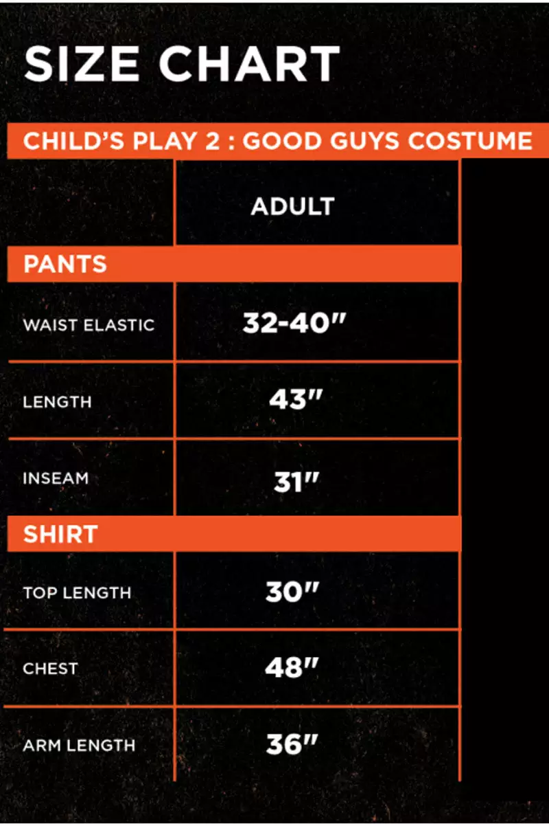 ![TRICK OR TREAT STUDIOS Child's Play - Good Guy Costume [Adult] 5 TRICK OR TREAT STUDIOS Child's Play - Good Guy Costume [Adult] - Image 3](https://www.kreepsvillesau.com/wp-content/uploads/2023/09/childsplay2-goodguys-size-chart_1.webp)