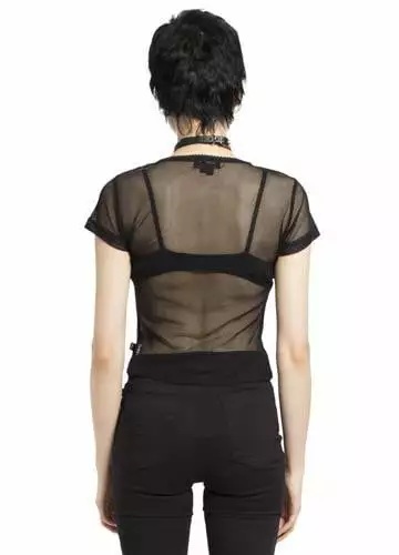 In shadows you dwell. You’re a mystery many would like to solve, but few ever will. Constructed of high-quality fishnet fabric, this short sleeve t-shirt shows some skin to intrigue and leave ’em wanting more! You’re a dark dream in this gothic baby tee, complete with a romantic round neck, flattering fit, and fishnet fabric.