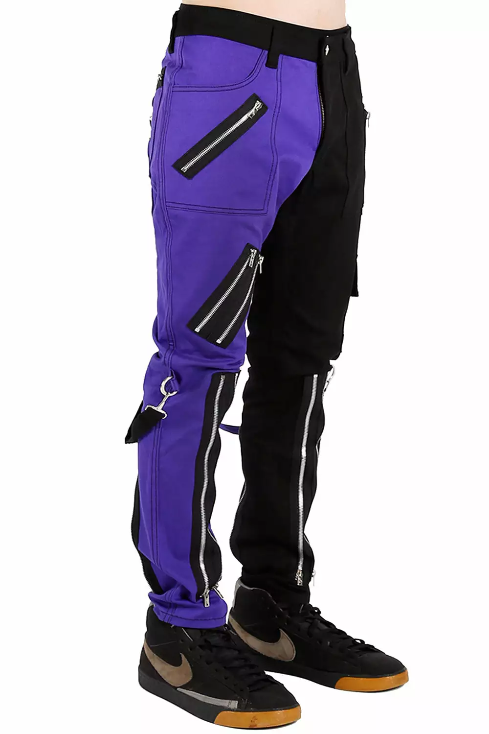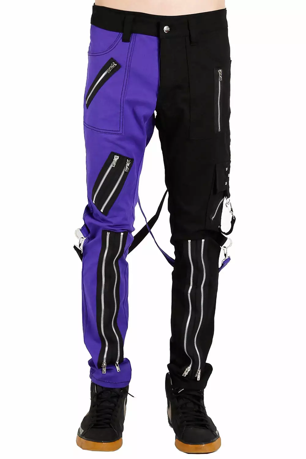 - Half Purple Half Black Pants.