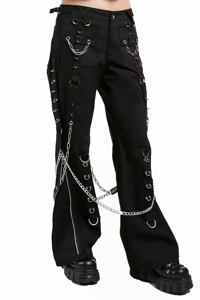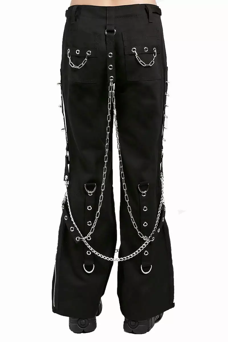 Get chained up these baggy bondage pants, loaded with an arsenal of metal hardware! Zip up the pant legs for a change in style—carry your evil essentials in the pockets. Unleash in the metal rivet spikes, accent straps, and D-ring details. Finished with a baggy fit, pierced with metal to match your black metal heart.