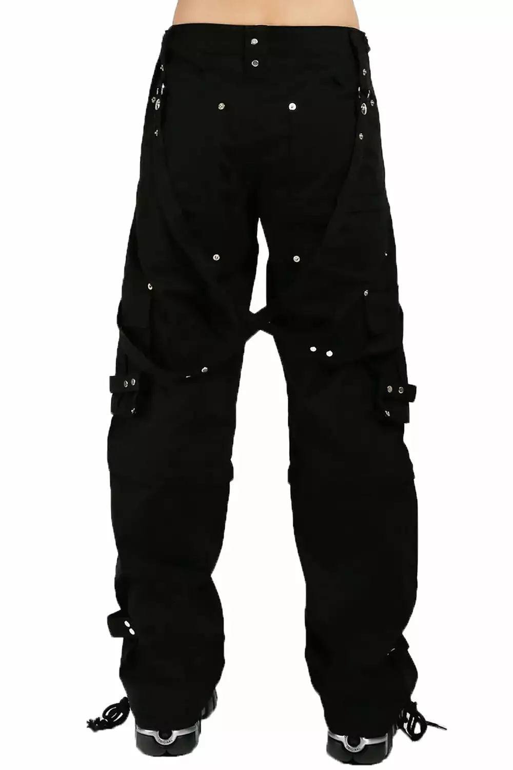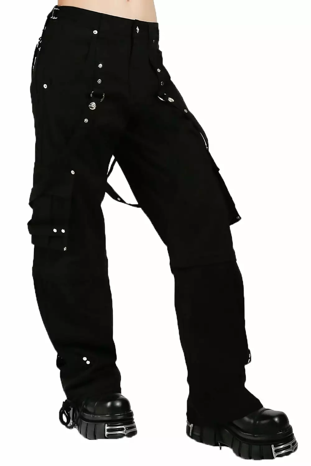 Crush it in these all-black street goth pants! Constructed for creeptures of the night, these baggy bondage pants feature metal studs and detachable straps. Features belt loops, zip fly, and button closure for the perfect punk fit. Tote your goth goodz in the deep pockets—zip off the pant legs to transform these Tripp pants into shorts!