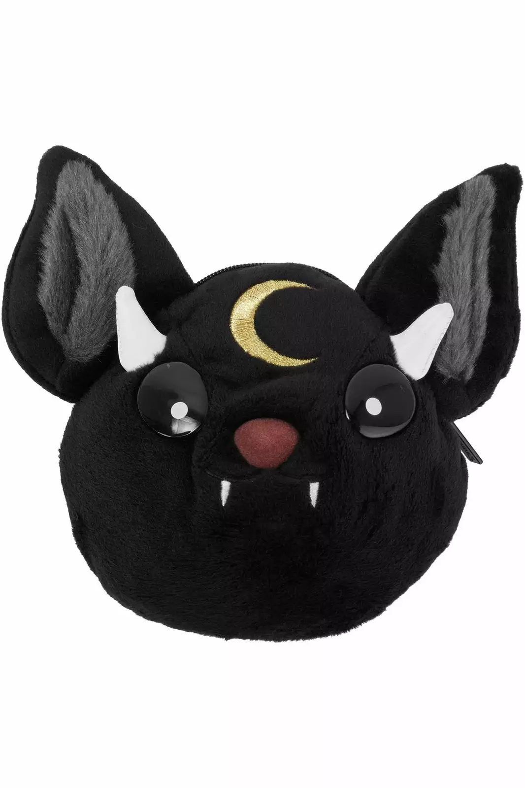 Keep yer money where ya can see it with our ‘Vampir’ coin purse; in a soft faux-fur material with adorable cartoon eyes, large 3D ears + horns, embroidered moon and zip closure. The cutest purse ever!